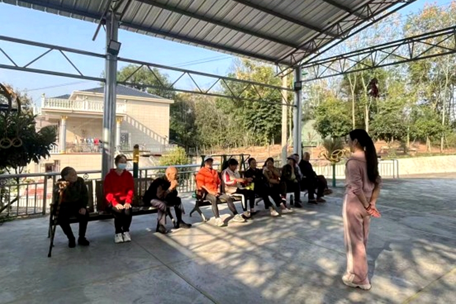 前些天,她旁听了镇上组织的网络直播技能培训班。在直播平台上,她是这样介绍自己的:“处理村里大大小小的事,忙碌依然乐在其中。”“做乡村守护人,宣传推广家乡农副产品。”回到村里,她立马行动,通过组长、邻长发动周边群众帮助80岁的钟秋英老夫妇采摘起了橘子,还在网上宣传销售,成为助农好帮手。