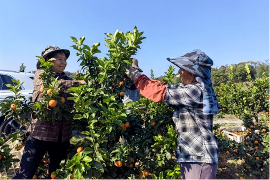 助农小分队帮80岁老夫妇摘橘子