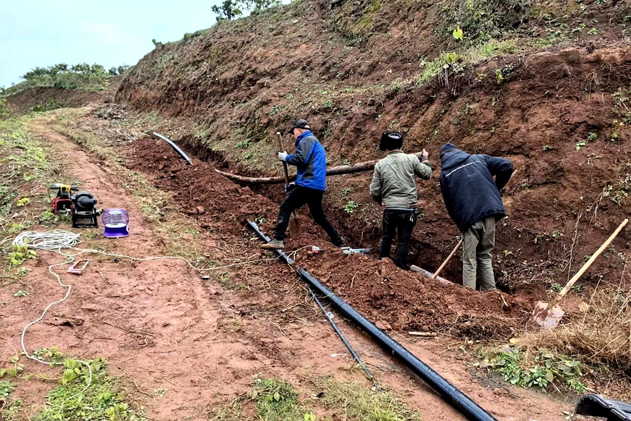 泥窝潭乡党委政府得知这一问题后,闻令而动,立刻召开党政联席会议,明确了保障农户用水是必须做好的底线工作,成立专项工作小组限期14天解决燕岩庙村农户用水问题。在乡党委政府的牵头下,工作小组联合燕岩庙村委会前往实地进行勘察,制定解决方案,经乡村两级干部及村民代表共同商议,一致决定采取铺设管道从占水洞水库引水的方法保供水,为保障管道顺利安装,工作小组彰显作为,主动担当,积极对接施工方,调配施工材料,加快管道铺设工期。同时,乡党委政府采取消防车送水、重新启用老井等措施,保障施工期间农户的正常用水。