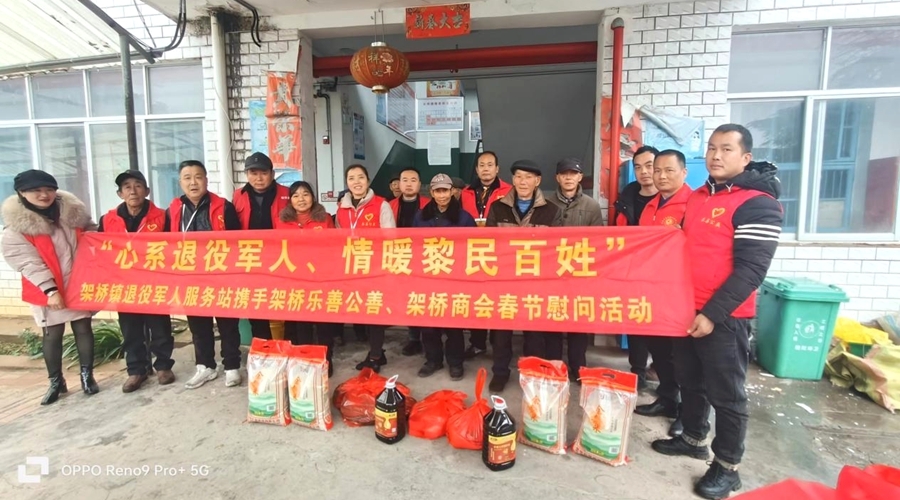 在新春佳节来临之际,为进一步弘扬拥军优属的光荣传统,让退役军人度过一个温馨祥和的春节,1月18日,架桥镇退役军人服务站携手架桥乐善公善及架桥商会开展春节前走访慰问困难退役军人活动,为他们送去新春的问候和祝福。