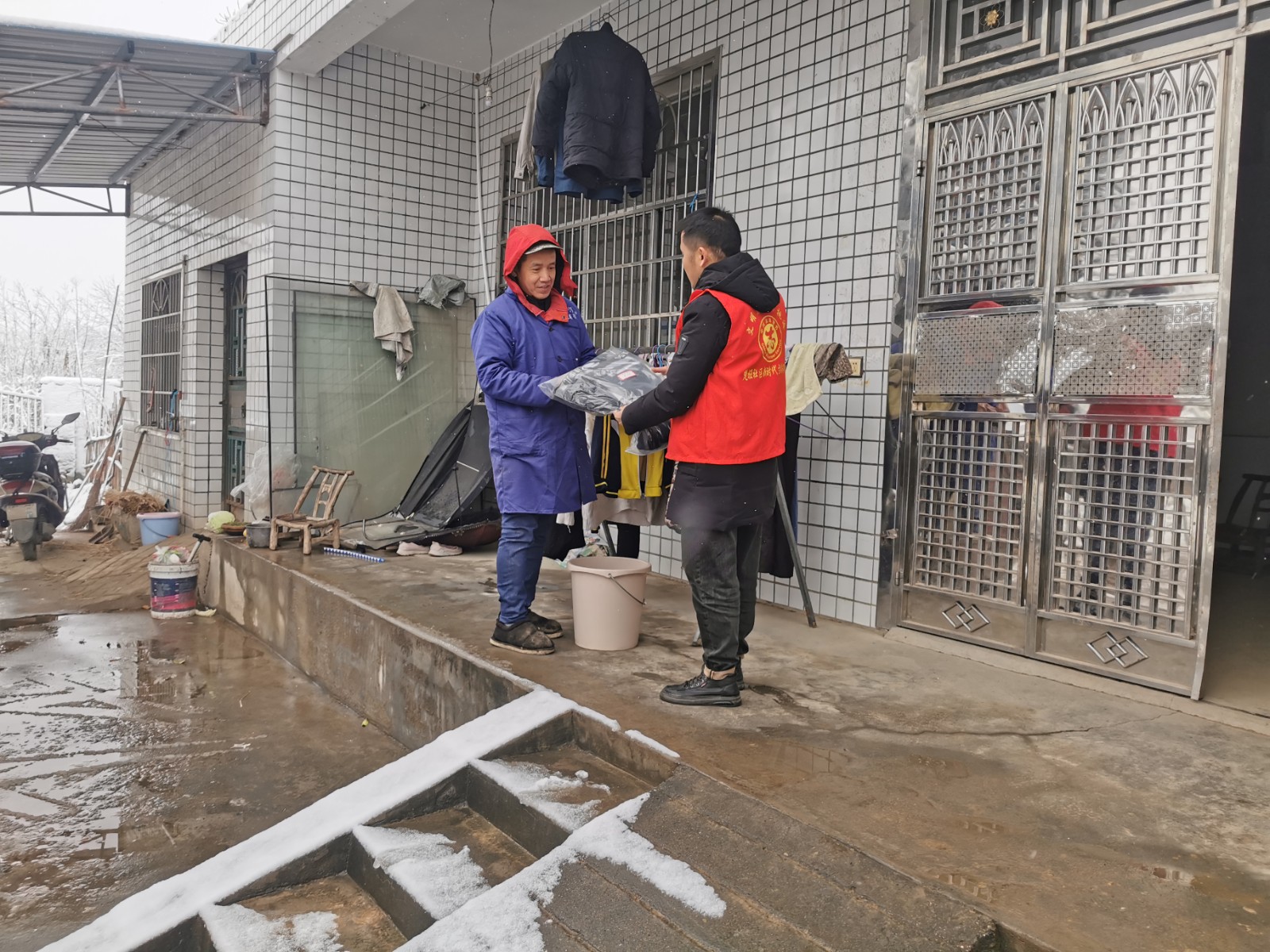 给困难居民送慰问品