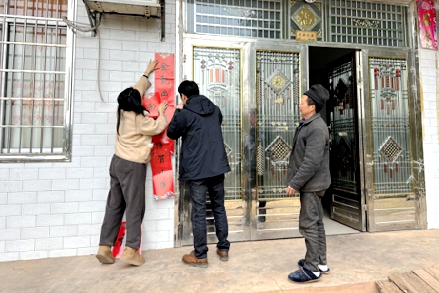 送温暖,过祥年。在走访慰问中,帮联干部们不仅带来了米、油、衣物等春节物资,还帮助困难群众贴上了春联,叮嘱他们注意防寒保暖。户主李长林激动地说:“感谢党和政府一直想着我,为我送来这么多东西!”