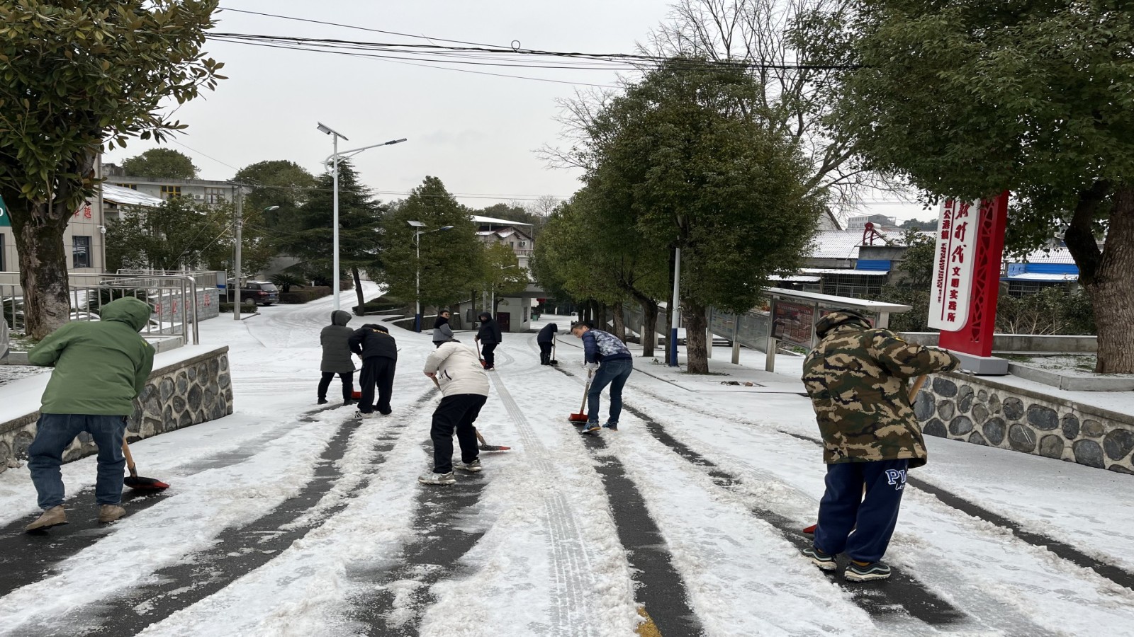 党员干部集中进行铲雪除冰