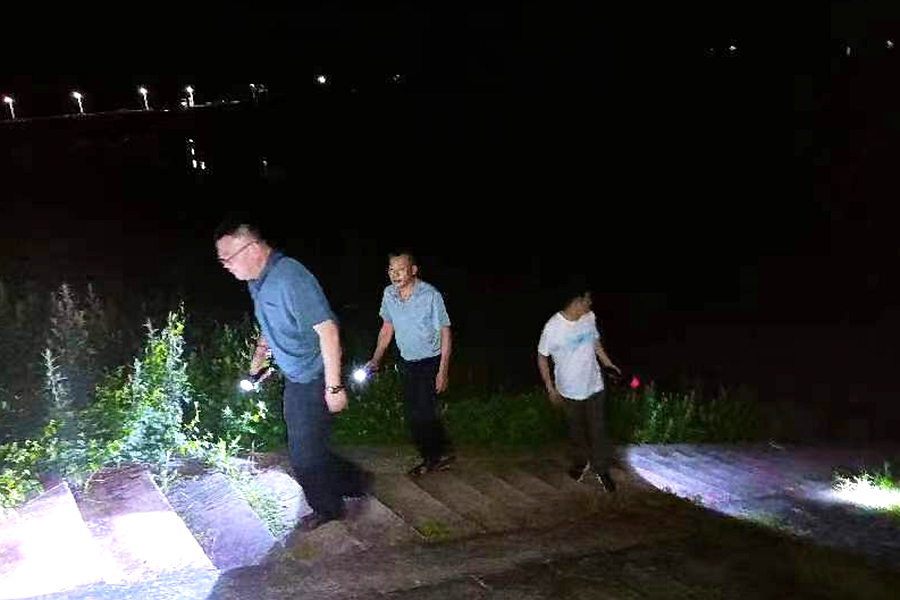 漳江垸委会:夜间巡查不放松 全力做好防洪巡堤工作