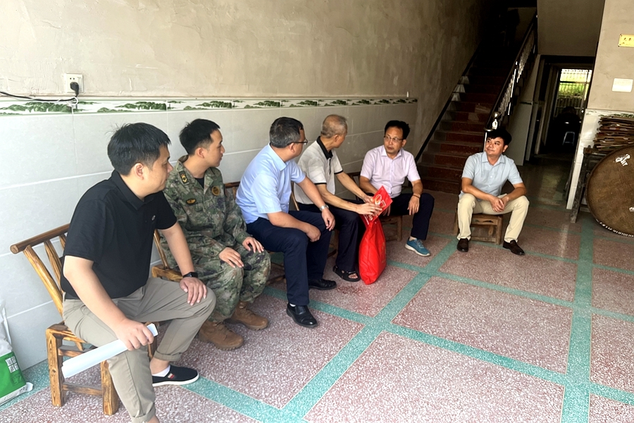 在抗美援越老兵王云新家中,慰问组一行为老兵送去了节日的问候及慰问品,并与老兵拉家常、交心声、诉真情,认真聆听他的军旅生涯和战斗经历,详细了解老兵的身体状况、生活情况等,并嘱咐老兵要保重身体,同时感谢老兵们为国家作出的奉献,致以八一节日的敬礼和美好祝福。