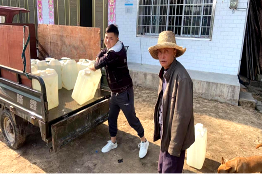由于该镇地处山区,为解决孤寡老人等特殊群体用水问题,各村以屋场为单位,对特殊群体户一一进行摸排,因户施策,道路通畅的用洒水车送,道路稍微崎岖的由村居组织车辆送,大家克服千难万阻,把“清甜”送到百姓家中,缓解了燃眉之急。