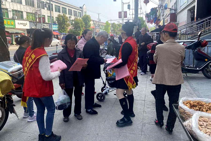 镇居保办工作人员摆摊向群众宣传城乡居民养老保险
