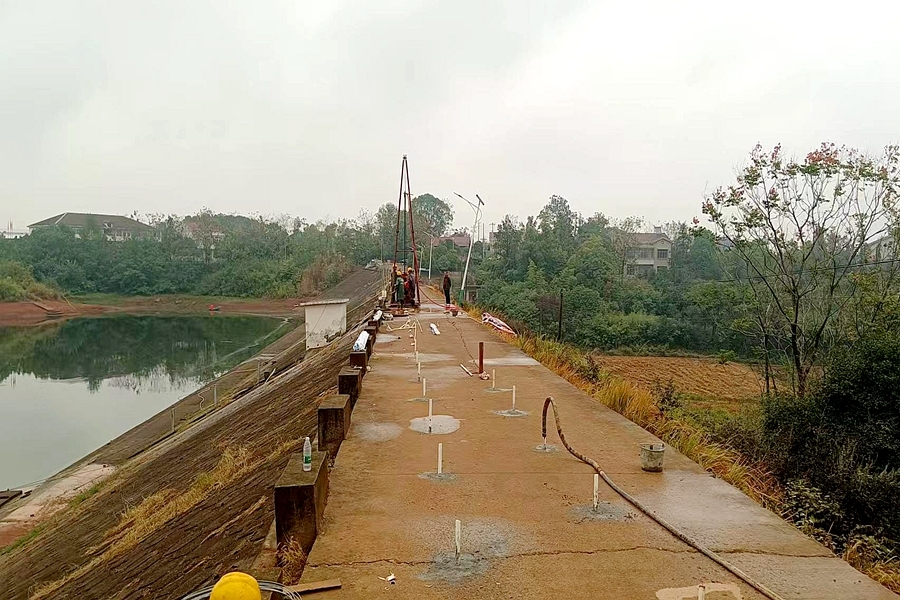 10月15日,在盘塘镇黄叶岗村永胜水库除险加固工程建设现场,机器轰鸣,施工人员正进行大堤灌浆防渗施工,施工人员各司其职,忙碌作业,将水泥浆通过管道高压注入渗漏部位,紧张有序推进工程建设。