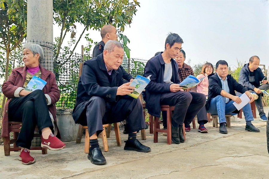 在交流过程中,镇村两级干部积极发放《政策宣传手册》,用通俗易懂的语言、生动鲜活的事例、聊家常的方式,深入讲解本月人居环境整治重点工作,并针对当前“秀美桃源”、医保征缴、土地延包等重点任务进行了安排部署。