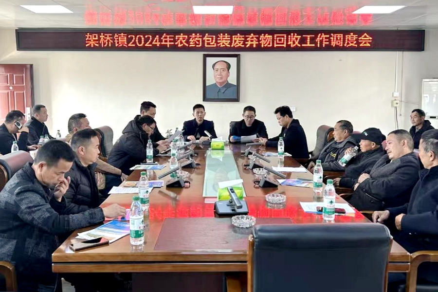 为普及农药包装废弃物的安全处理知识,增强群众环保意识,改善生态环境,近日,架桥镇组织各村干部、种粮大户、生态管护员开展农药包装废弃物回收处置工作调度会。