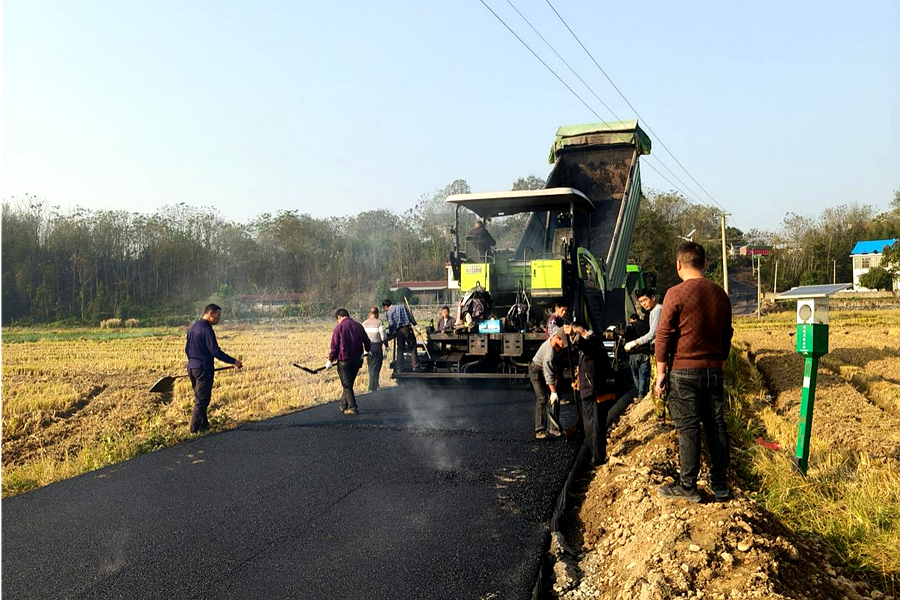 近日,金紫山村新义建材至先锋村原灌车湖桥头公路沥青路铺设完成。