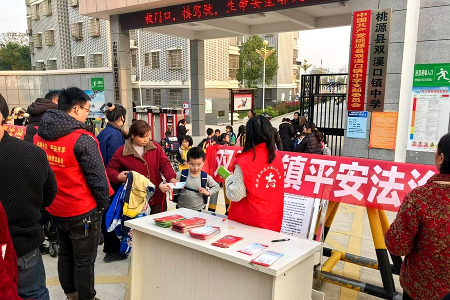 近日,桃源县双溪口镇平安办联合司法所、妇联、团委等多部门,召集青年志愿者在镇中学进行普法活动。