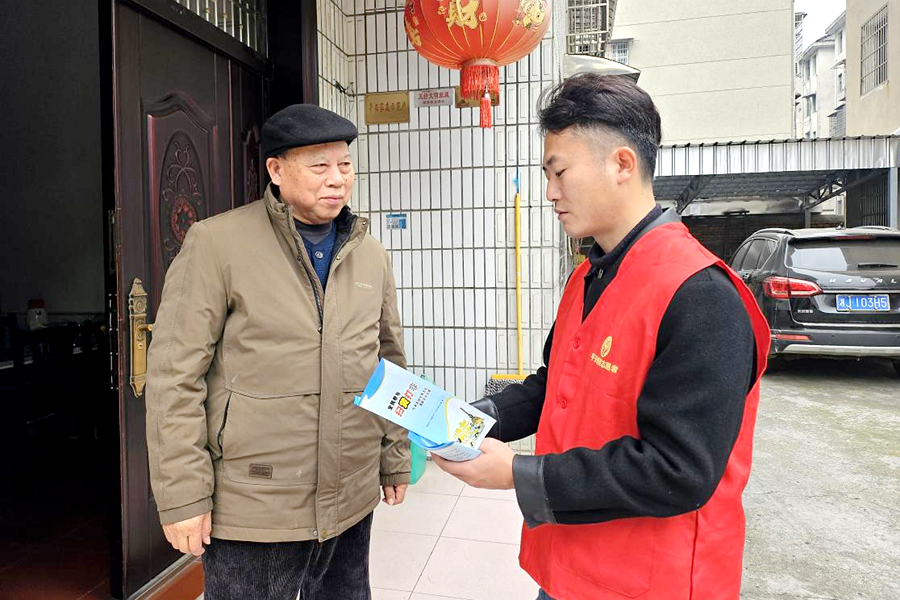 浔阳街道洞庭宫社区工作人员向群众宣传“扫黄打非”知识