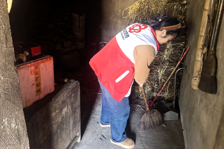 除了宣传政策、收集民情、送上物资,志愿者们还主动帮助老弱病残群众打扫卫生,整理家务。他们分工合作,有的扫地擦窗,有的整理物品,还有的陪伴老人聊天解闷,现场氛围温馨而融洽。