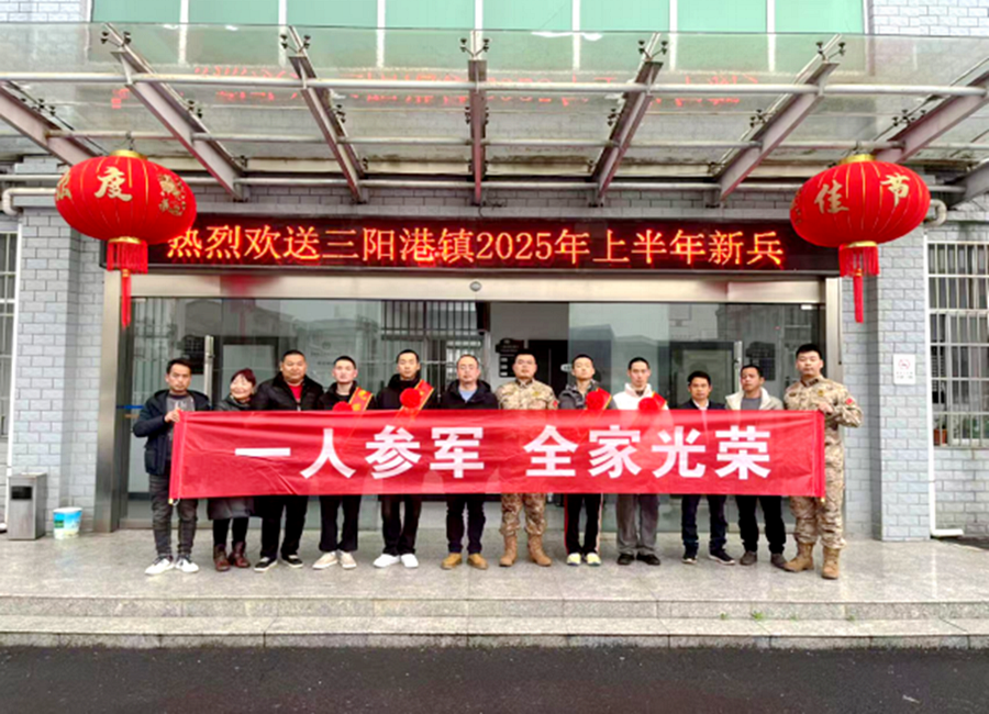近日,三阳港镇举行2025年上半年新兵欢送会,5名优秀青年身着戎装、肩披绶带,在热烈的掌声中踏上军旅新征程。