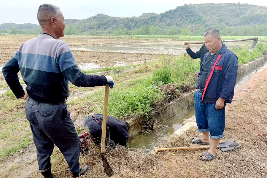 村“两委”组织党员群众,充分发挥“片组邻”三长熟悉村情民情的优势,深入田间地头,实地查看旱情,及时上报需要灌溉的农田面积和用水量,他们还走家串户,宣传节水意识,引导村民合理用水,共同应对旱情。同时发动群众组建抗旱互助组,清淤通渠,错峰灌溉。