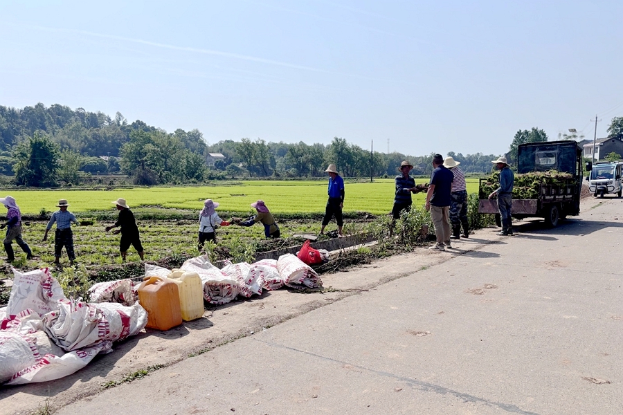 龙昌村组织党员群众疏通渠道、“两级电排联动”抽水灌溉