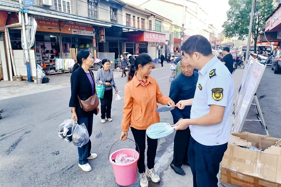 活动现场,工作人员热情饱满地向过往居民发放宣传资料,宣传资料内容丰富、图文并茂,涵盖了地震、火灾、洪水、台风等常见自然灾害的预防、应对和自救互救方法。宣传小扇子在兼顾实用性的同时,印有简洁明了的防灾减灾小常识,方便居民在日常生活中随时查看。