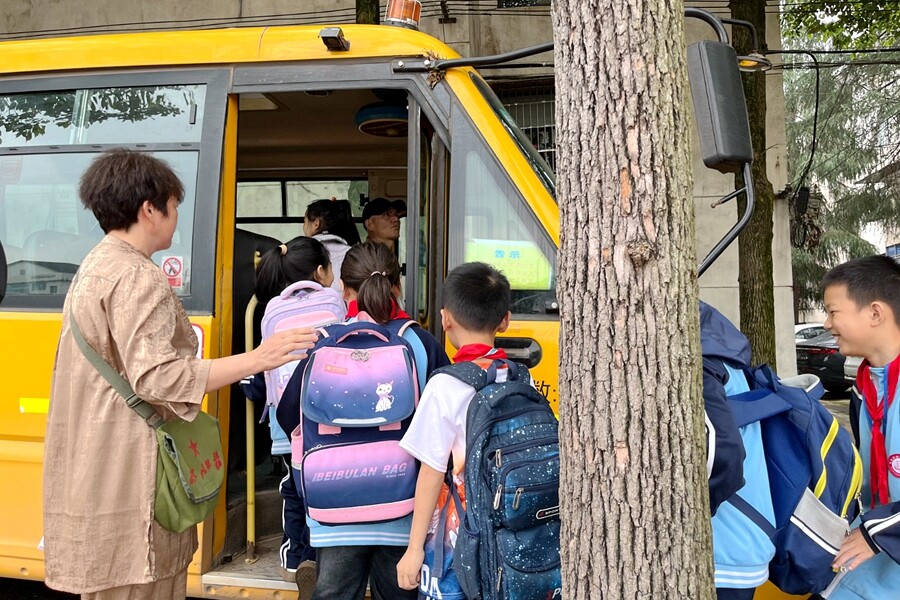 随着总指挥一声令下,应急演练拉开序幕。待校车司机对车辆发动机、刹车、轮胎、仪表盘、灯光、灭火器、安全锤等部件、设备一一检查,确保车辆能安全使用后,老师组织学生有序上车,照管员清点学生人数,检查学生是否系好安全带,并对“八不发车”情况进行严格检查。