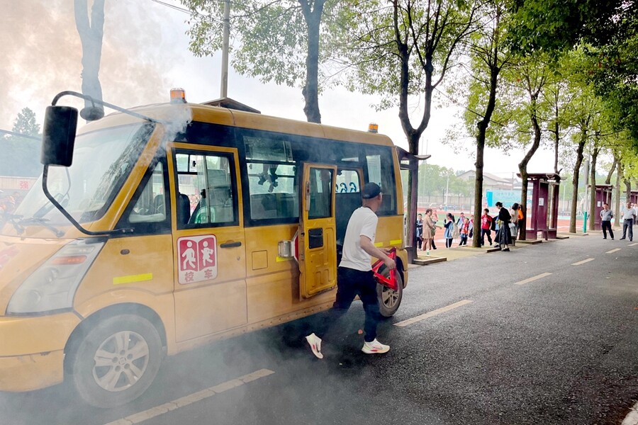 为进一步保障校车安全,增强乘车学生的安全意识、防范能力,增强师生应对突发灾害事件的心理素质,近日,剪市镇中学开展校车应急演练,通过模拟校车碰撞起火的场景,给全校师生呈现一堂直观生动的校园安全教育课。