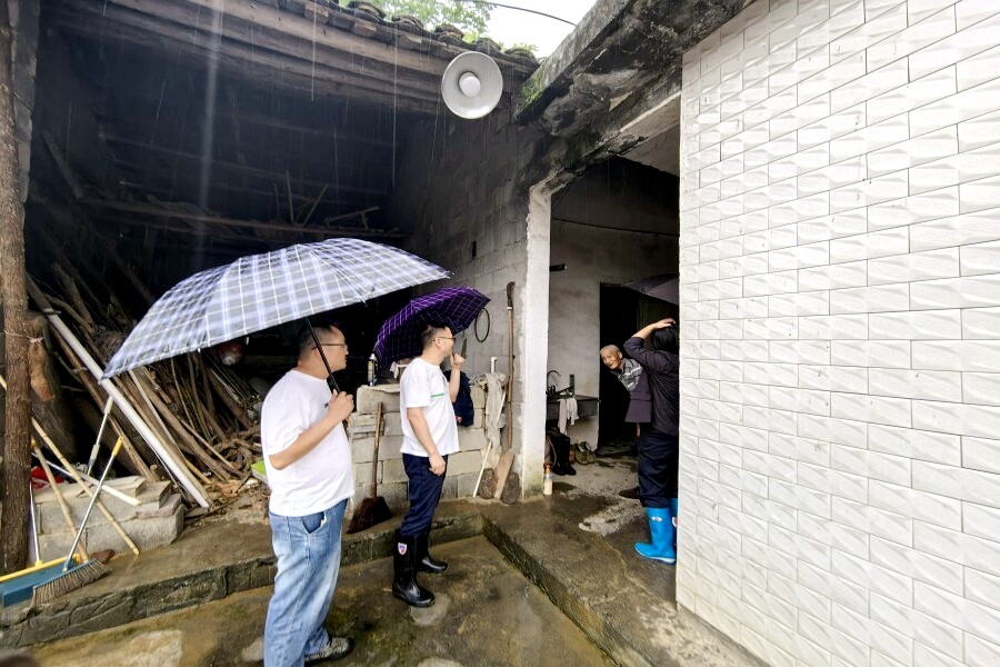 联村干部劝导群众转移