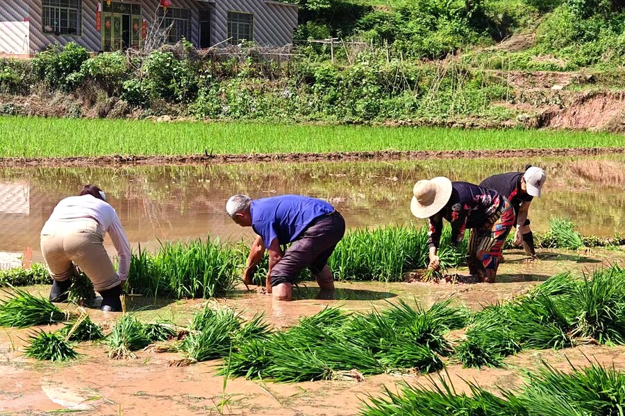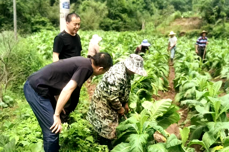 5月25日,牛车河镇的农户们开始清理碎石、补播秧苗。牛车河镇是我县烟叶种植乡镇之一,近日当地遭逢暴雨,县农业部门技术人员仔细查看农田受灾情况,为农户提供技术指导。