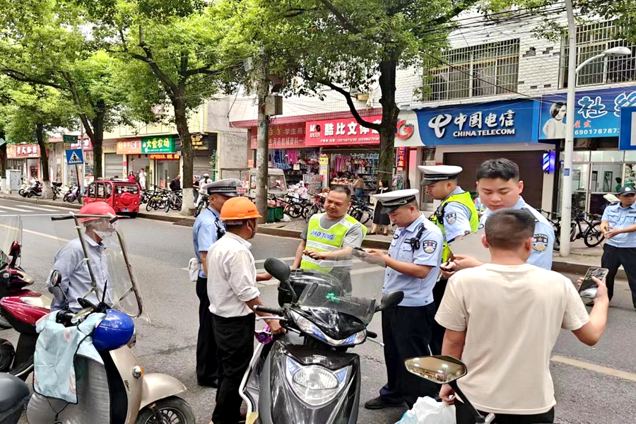 除了现场劝导,整治小组还采取了定点检查与流动巡逻相结合的方式,对骑乘人员未佩戴安全头盔、闯红灯、逆行、非法加装遮阳伞等交通违法行为进行严格查处。针对非法加装遮阳伞的违法行为,执法人员不仅现场拆除,还耐心告知驾驶人该行为在行车过程中的危险性,叮嘱其以后不再加装。同时,通过张贴教育警示牌、观看交通事故警示视频等方式,对未佩戴安全头盔者进行整治与警告教育,有效提升了驾乘人员的交通安全意识。在行动开展期间,街道道安办还组织社区志愿者深入居民区、商户及学校,发放交通安全宣传资料,开展“一盔一带”安全知识讲座。通过面对面的交流与教育,让更多的居民认识到佩戴头盔的重要性,并自觉遵守交通规则。