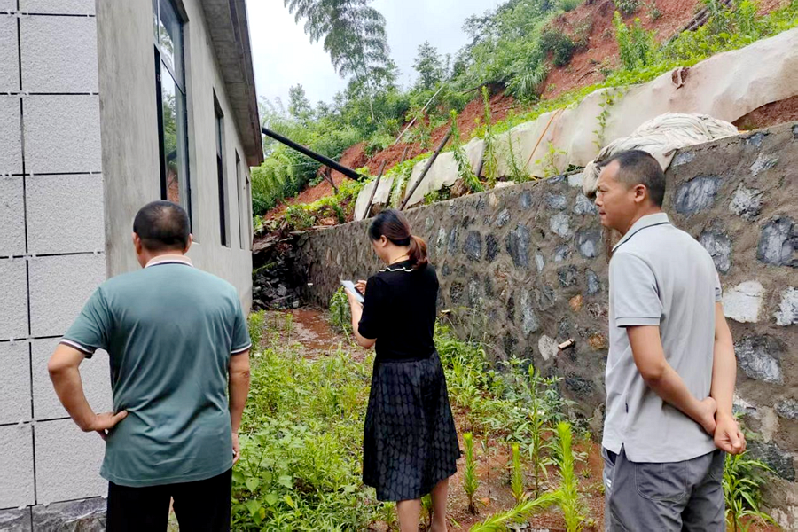 工作人员核查地灾情况