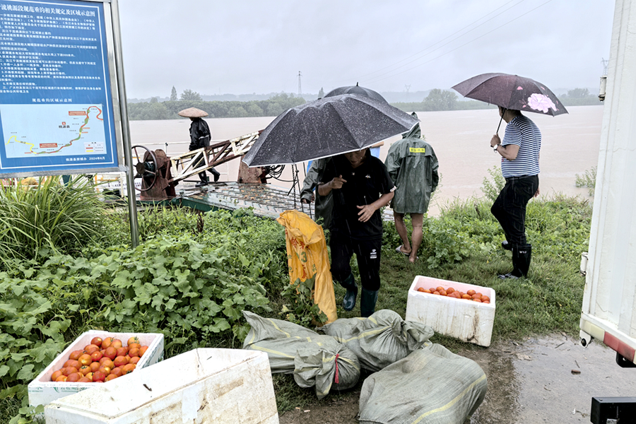 艟船洲系沅水江心洲,洲上建有百亩蔬菜基地。因近期持续强降雨,上级部门决定对沅水桃源段实施水上交通管制,交岩渡口便是其中之一。而眼下正值时令蔬菜采摘季,为了守护好居民群众这一季的辛勤耕耘,6月21日,在街道党工委的科学调度和迅速组织下,党员干部与群众一道同暴雨与时间赛跑,展开了一场抢收农时的“鏖战”。