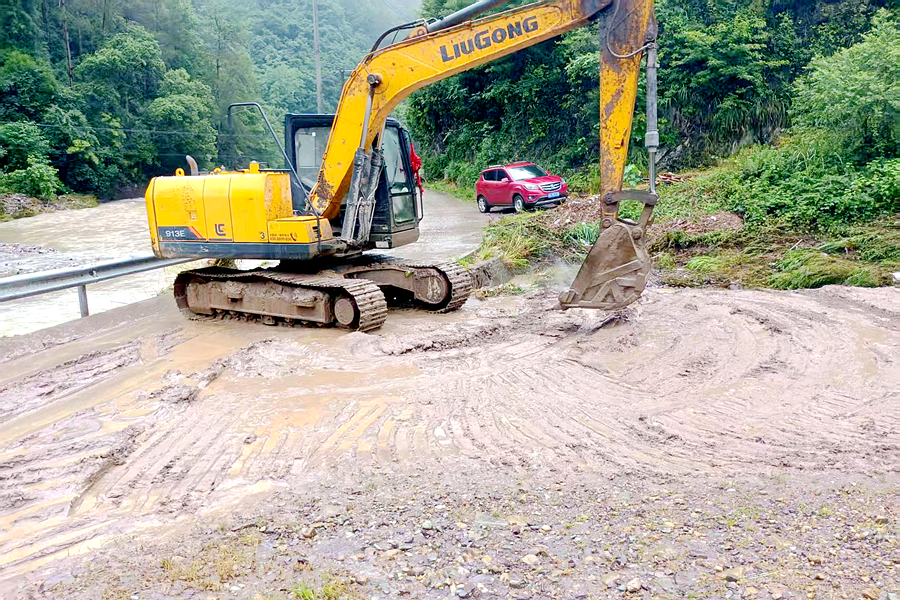 在大池塘村至白洋坪村的必经路上,洪水带来的淤泥严重影响村民通行和人居环境美观,淤泥混合着断裂的树枝、垃圾,人工清理难度极大。洪水一退,值了几天晚班的大池塘村支书张振球顾不上休息,一大早就领着挖掘机对垮塌路段、淤泥堆积路段一处处的进行清理,经过几小时连续作业,大池塘各路段终于恢复畅通。