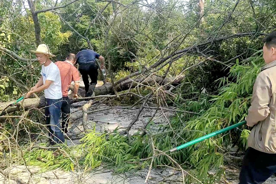 “大家加把劲,先把吹倒的树挪开先把路打通!”面对眼前凌乱的路面情况,村支书当机立断,带领村干部迅速分组行动。一组联系周边群众清理道路上的断枝残木,另一组联系电力部门抢修电路,同时挨家挨户排查房屋受损情况。风雨过后,他们的身影穿梭在村里的各个角落,汗水与雨水混在一起,却丝毫没有放慢脚步。