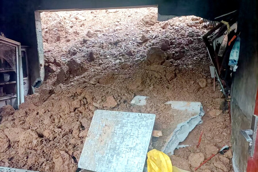 7月21日0时30分,一声闷响打破夜的宁静——曾祥群屋后发生100立方米山体滑坡,岩土体瞬间击穿民房,屋内被堆积物填满。而此刻,曾祥群一家正坐在村部的房间里,望着窗外的雨幕,后怕之余更满是感激:“多亏干部们坚持让我们转移,捡回了全家人的命啊!”