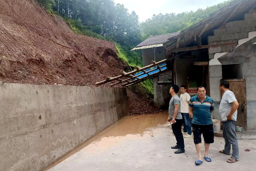 磨子坪村党支部书记带着村干部冒雨穿梭在村组间,对在册隐患点和高风险切坡建房户逐一排查。19时30分,当排查到村民曾祥群家时,工作人员发现其屋后坡面不断有零散土块滑落,“这是滑坡前兆,必须马上转移!”