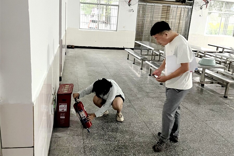 检查过程中,工作人员通过全面排查校园安全隐患,压实全链条安全责任,坚决防范化解安全风险。此次检查主要围绕以下三个方面展开:一是消防安全。检查组对教学楼、宿舍、食堂等场所的消防设施进行逐项检查,包括灭火器压力状态、消火栓启用功能、疏散通道畅通性等,同时规范用电用气管理,确保应急保障全覆盖。二是食品安全。通过查验原料采购台账、供应商资质及加工操作流程,检查组重点监督餐具消毒设备运行记录、冷藏温度达标情况,严格执行生熟分离存放标准,从源头杜绝食品安全风险。三是设施安全。对学校建筑、围墙、门窗、楼梯护栏等设施进行安全隐患排查,确保设施设备坚固安全,无松动破损现象。