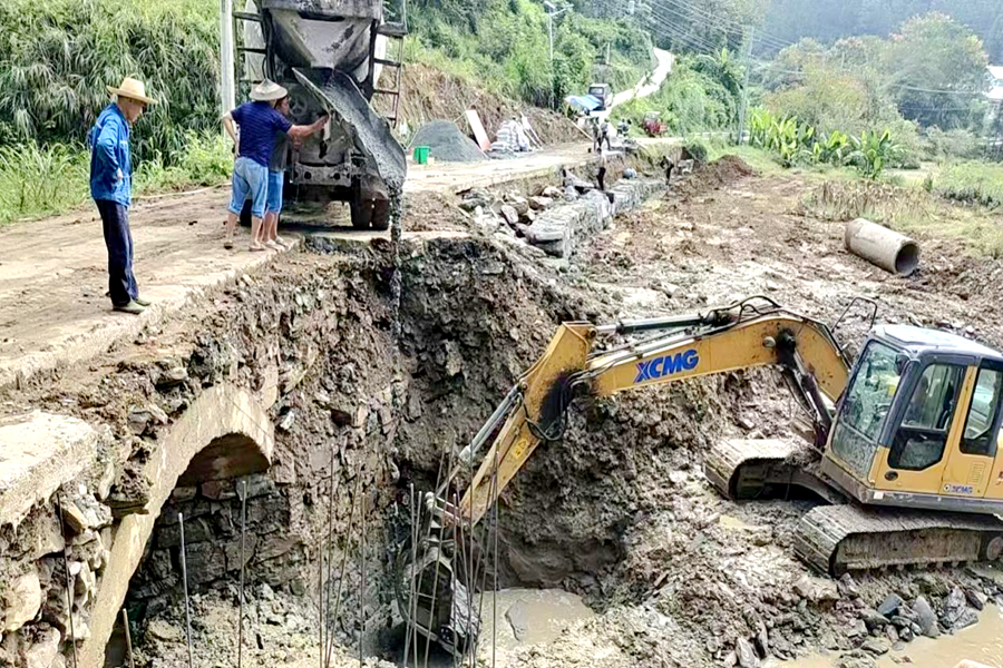 习家坝桥“水漫金山”动工治本:9月9日一早,挖掘机就开进了习家坝桥头。工人们正忙着挖出堵塞的涵管,在原桥基础上扩宽桥基桥面。现场负责人介绍:“这次要根治涵管堵塞的老毛病,等新桥建好,暴雨天河水再不会漫上路、冲农田了!”