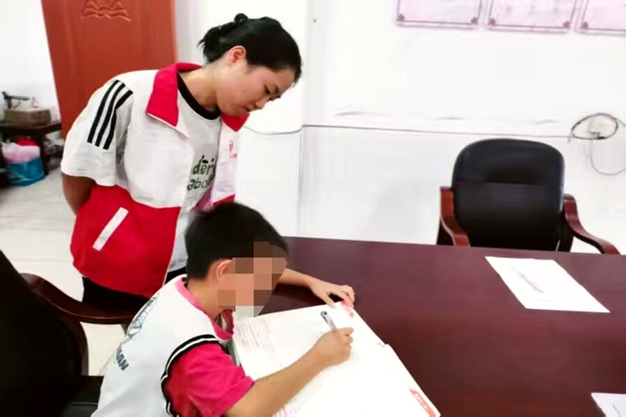 爱心妈妈辅导留守儿童作业