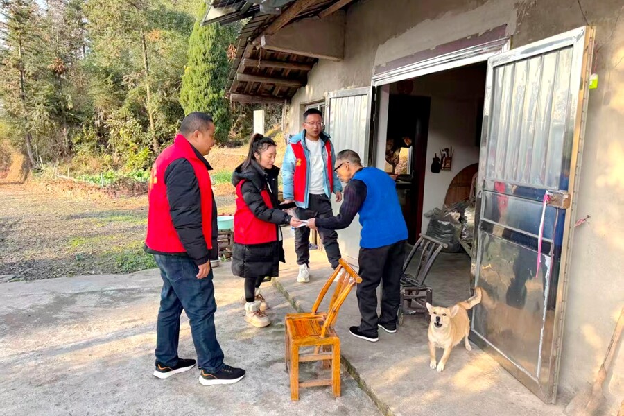 “伯伯,最近天气冷,您在屋里烤火,千万要记得开点窗通风,还要注意不要搞起火来哒,注意安全啦。”近日来,桃花源镇镇村干部、网格员和志愿者们化身“平安使者”,深入全镇村组,广泛开展了“敲门见面送平安”专项行动。