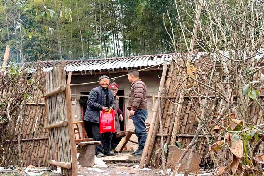 “伯伯,雪天路滑您可别出门,我们给您送点米和油,还有厚棉被,您看看够不够暖和?”一大早,镇村干部分组包片,带着慰问物资敲开了各村独居老人的家门。在留守老人燕大爷家中,村干部与他围坐在火炉边,仔细询问:“伯伯,这几天天冷,屋里的柴火还够用吗?”燕大爷笑着回应:“够用够用,不冷!你们还特地跑一趟,真是比子女还贴心。”