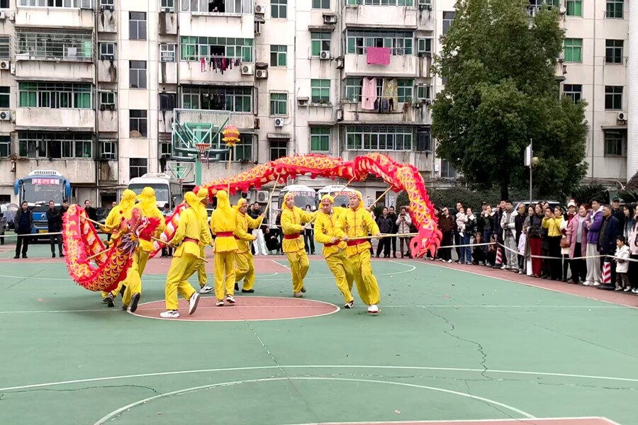 在备战县级展演的同时,这支“干部龙队”积极将训练成果回馈本地群众。元宵佳节前,他们已先后走进镇区主要街道、商业聚集区及部分重点企业、商户,开展新春拜年巡游表演。铿锵的锣鼓声、翻飞的祥龙吸引众多群众驻足围观、拍照分享。活动不仅为商户带来了吉祥喜庆,也为全镇群众送上了一份热闹温馨的“文化年货”,让传统年味在欢声笑语中弥漫开来。