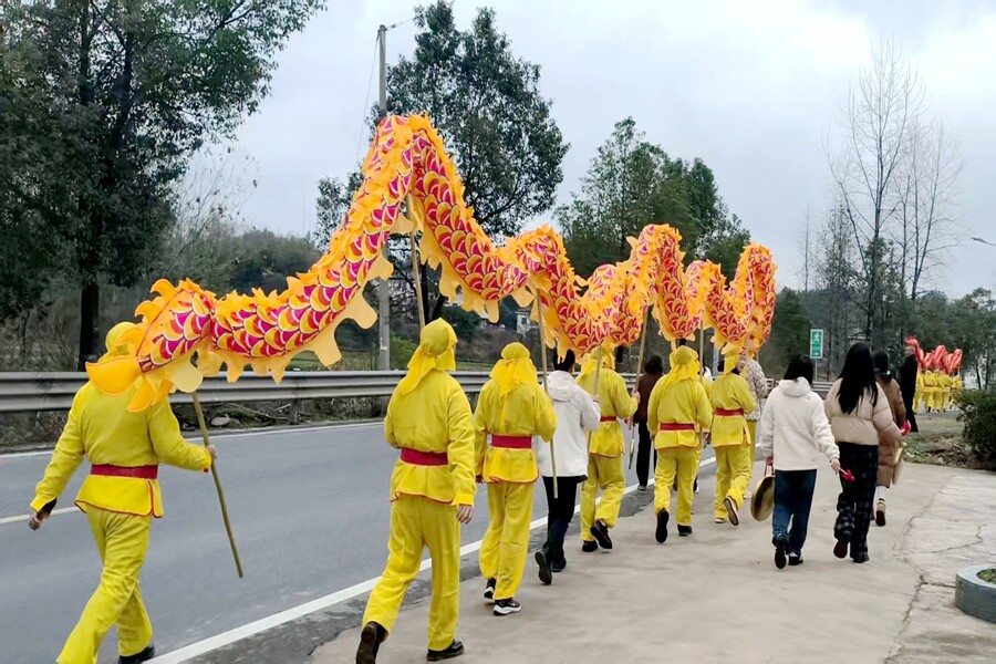 舞龙队伍在本镇巡游表演
