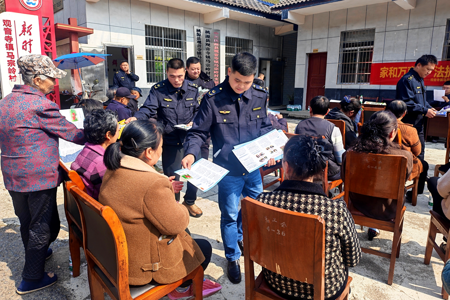 近日,观音寺镇党委统筹部署,马宗岭村党支部牵头联动桃源县龙潭市场监督管理所、驻村工作队,依托村党群服务中心广场,开展“家和万事兴,法护幸福家”暨“3·15”主题宣传活动,以党建引领赋能消费维权,把法治服务送到群众家门口。