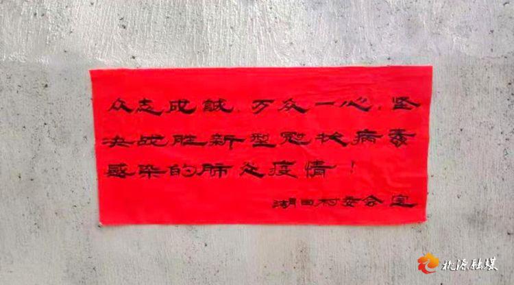 到年初六,杨秋元已经为湖田村守写了200多条手写标语,他的墨迹布满在湖田村的每一个村组,时刻提醒着湖田村的村民要少出门、少聚集。只要大家众志成城、万众一心,我们必将打赢这场疫情阻击战!
