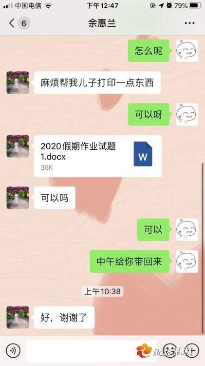 原来,余女士的儿子在桃源一中高三就读,本来是最紧张的备考阶段,却因为疫情而被通知推迟开学。学校通过微信群每天发试卷让学生加强学习,但余女士家没打印机,愁坏了。