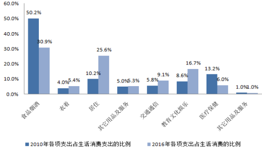 图2 2010-2016年桃源农村居民生活消费结构对比
