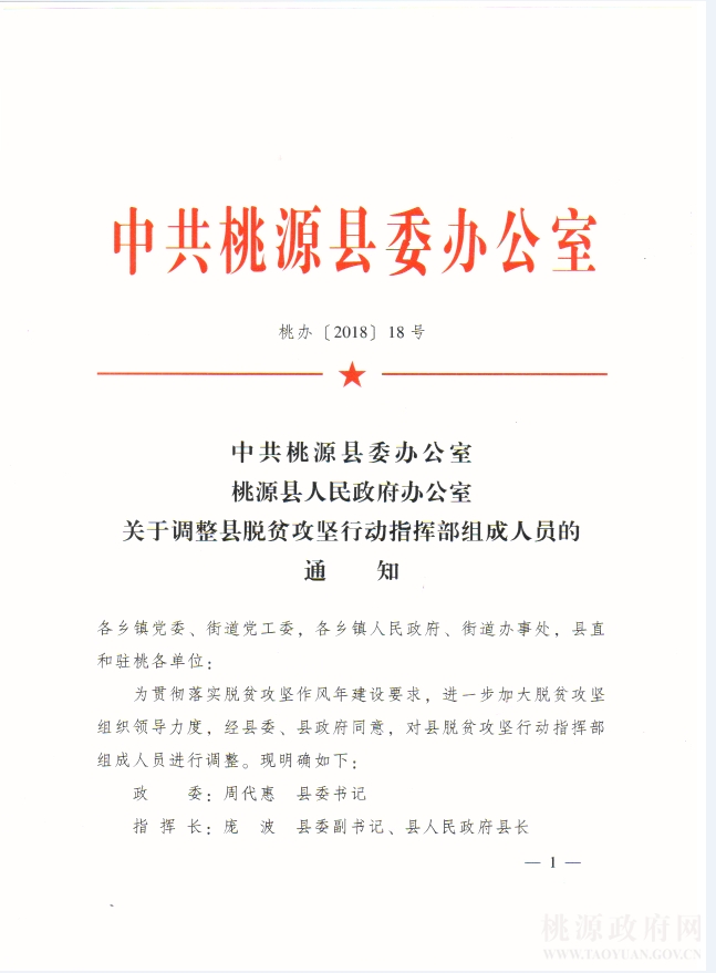 关于调整县脱贫攻坚行动指挥部组成人员的通知