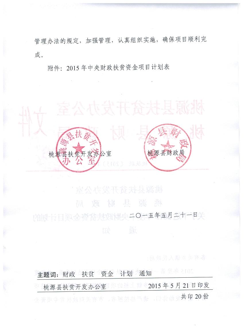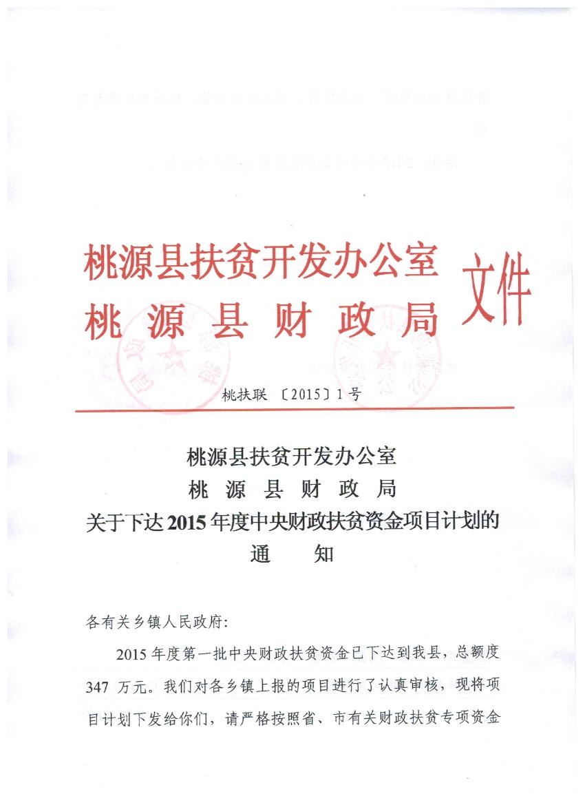 关于下达2015年度中央财政扶贫资金项目计划的通知