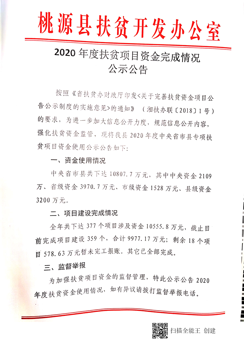 2020年度扶贫项目资金完成情况公示公告