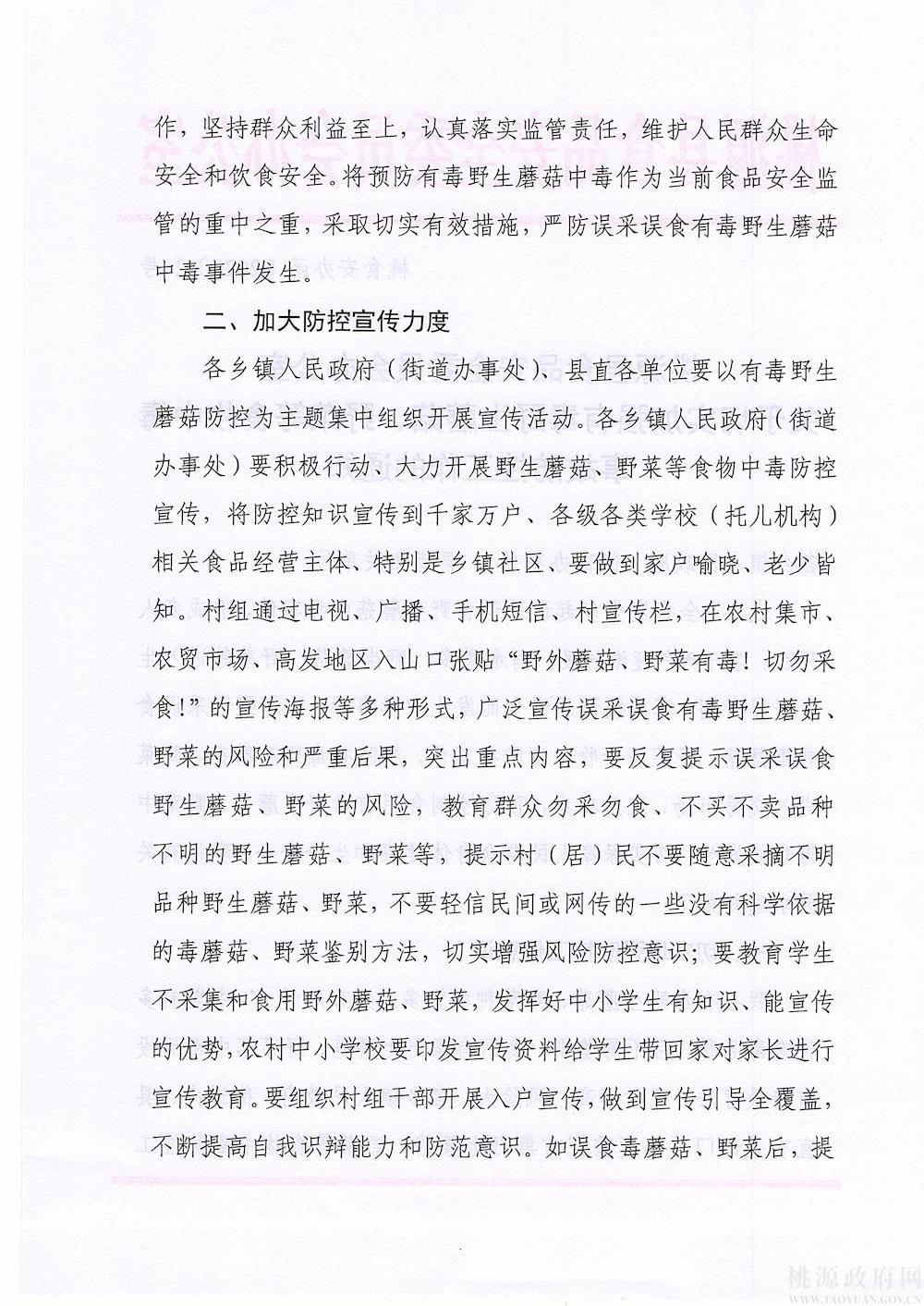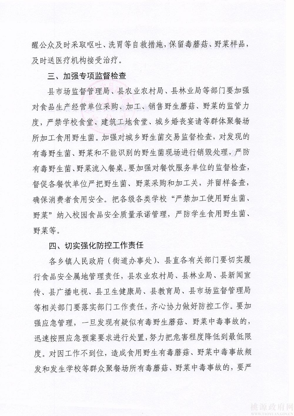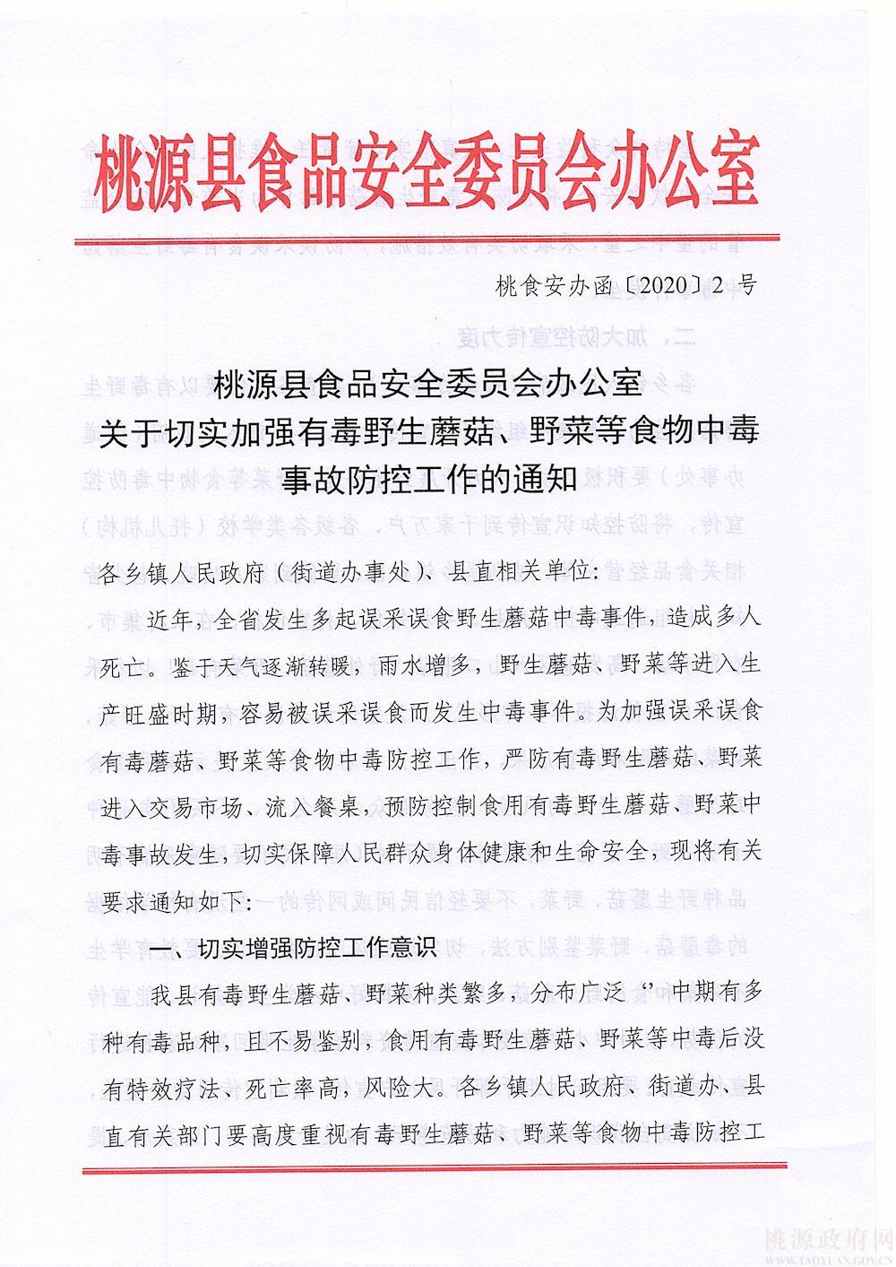 桃源县食品安全委员会办公室关于切实加强有毒野生蘑菇、野菜等食物中毒事故防控工作的通知