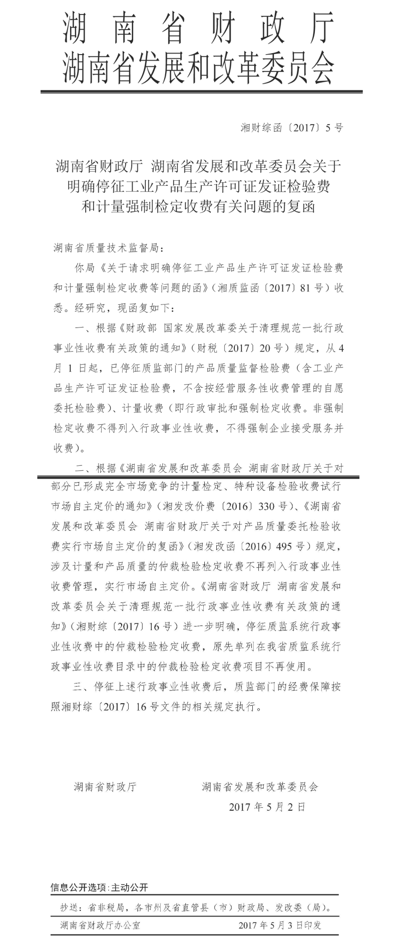 关于明确停征工业产品生产许可证发证检验费和计量强制检定收费有关问题的复函