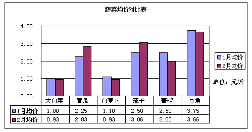 2月份,我市生猪收购、鸡蛋价格上涨,猪肉、钢材、水泥、尿素、碳酸氢铵价格下跌,蔬菜价格涨跌互现,其它主要工农业生产资料价格基本稳定。